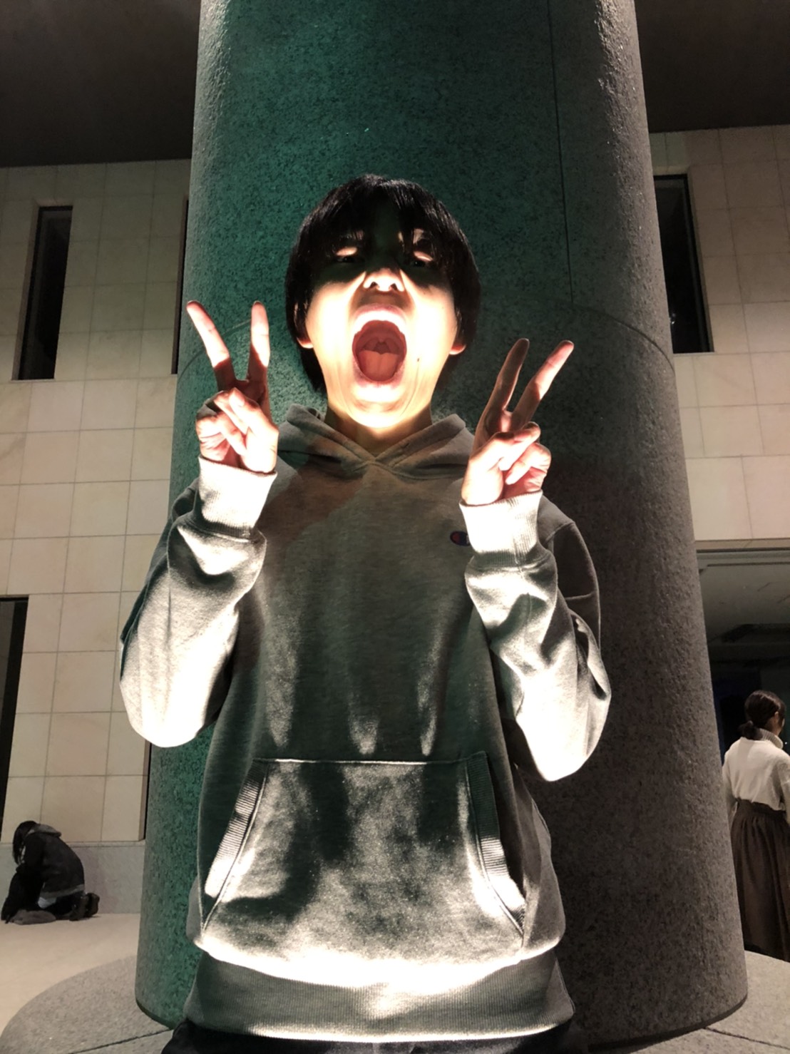 宣伝美術部では初めてチーフを務め、ビラ裏面のデザインを担当し、Web班としてはInstagramの投稿をして、更に役者もするという、1回生で今回が3公演目の参加となる身としては、なかなか忙しく活動しています。