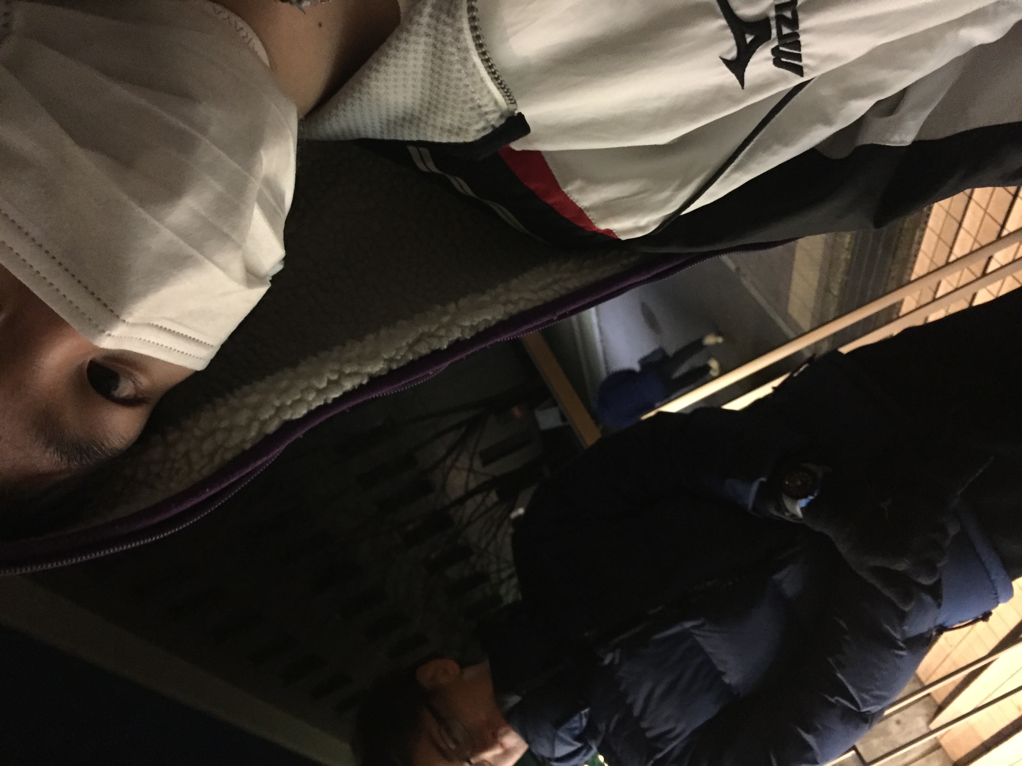 写真は、今日のお昼のお弁当の残りを賭けたじゃんけんを待つジェイク高崎と立花じーたです。