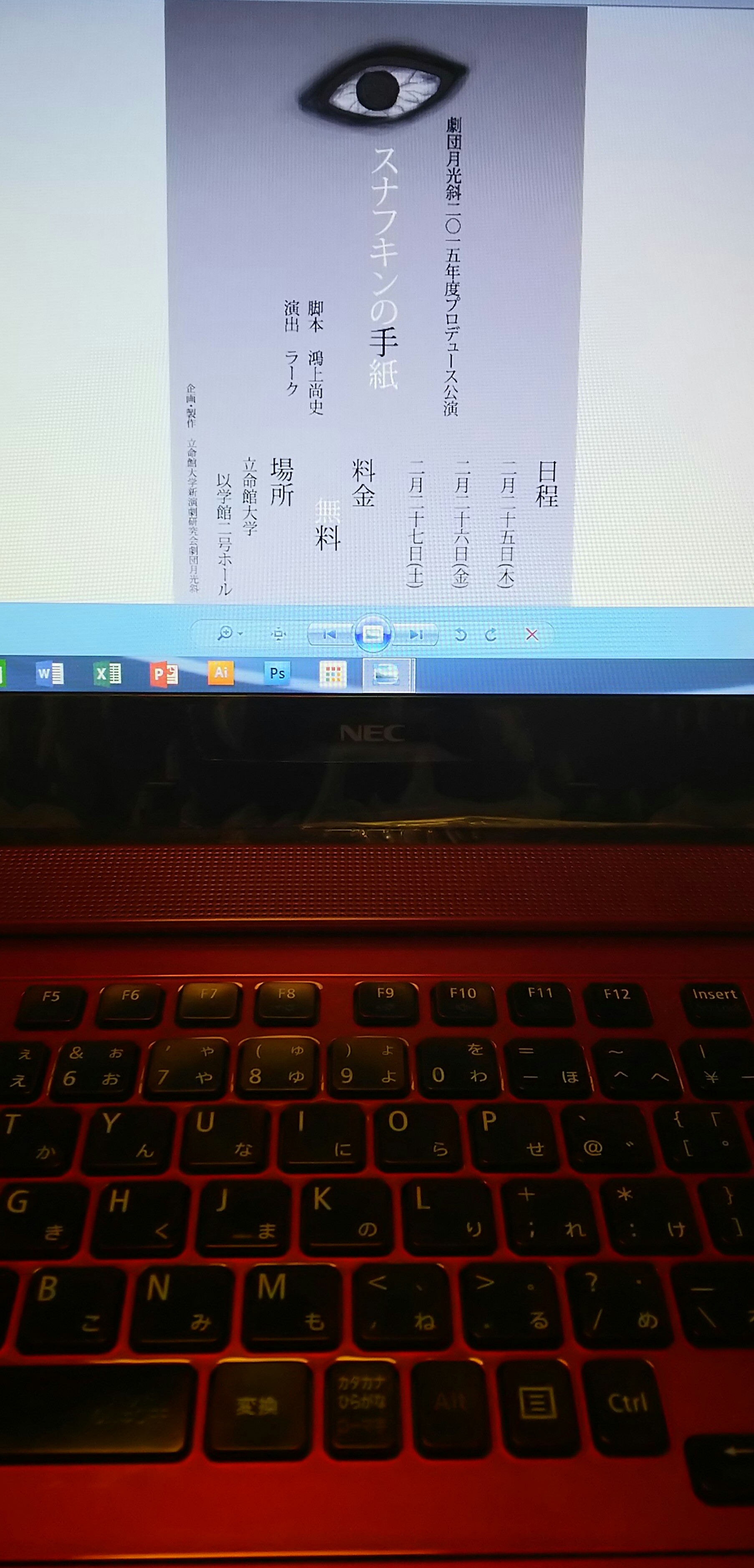 というわけで本題です。まあ今までずっと役者と舞台班をやってきたわけですが、演出となるといろんな部署を回ってみることができるのです。あー、こんなことこの部署はやってんだへーと思うことが初まって1日しか経ってないのに何回も思うわけです。視野が広がるとこんなにもワクワクするんですね、、そうです、今回は役者はもちろんスタッフも気合いが入ってます。ビラ、DM、パンフレット、舞台、照明、音響、衣装、そして我々劇団月光斜の雰囲気。全てをお客様には味わってほしいです。全てをひっくるめて面白いお芝居をお届けします!ので、次回公演観に来てください!また詳細が決まり次第ご連絡いたします!では!