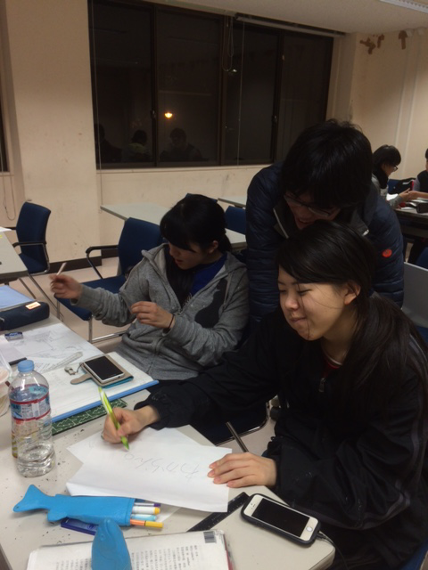 さて数日たって部室に行ってみたら早くも次の公演に向けて後輩たちがあーでもないこーでもないと話し合っておりました。すっかり最上回生ですね。