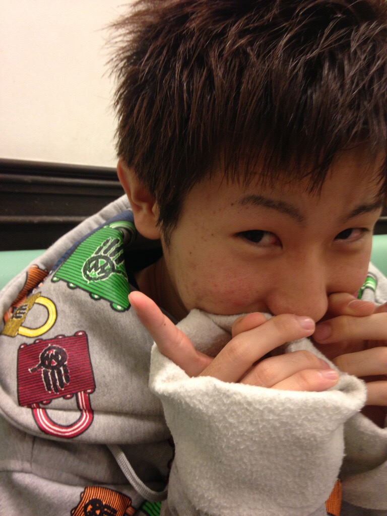 写真は、宣伝美術の長谷川永徳さんと伊藤バンビさんが作ってくださった受付装飾と、そこに写りこりこむ1回生の淡海優くんと个X槿くんです。