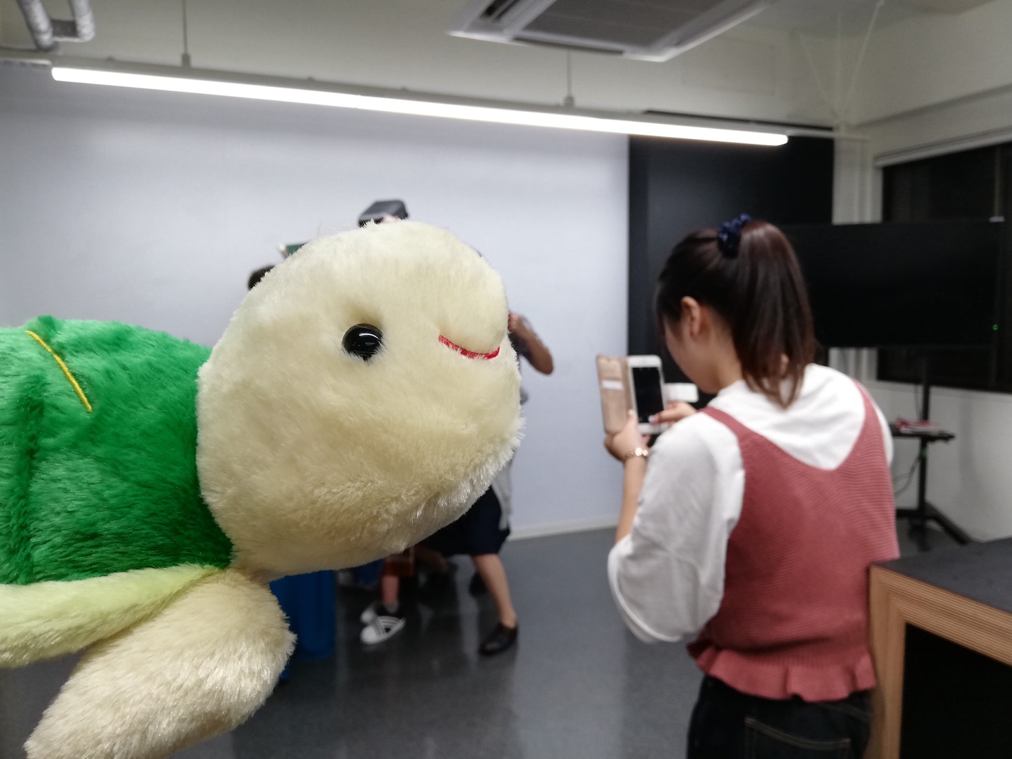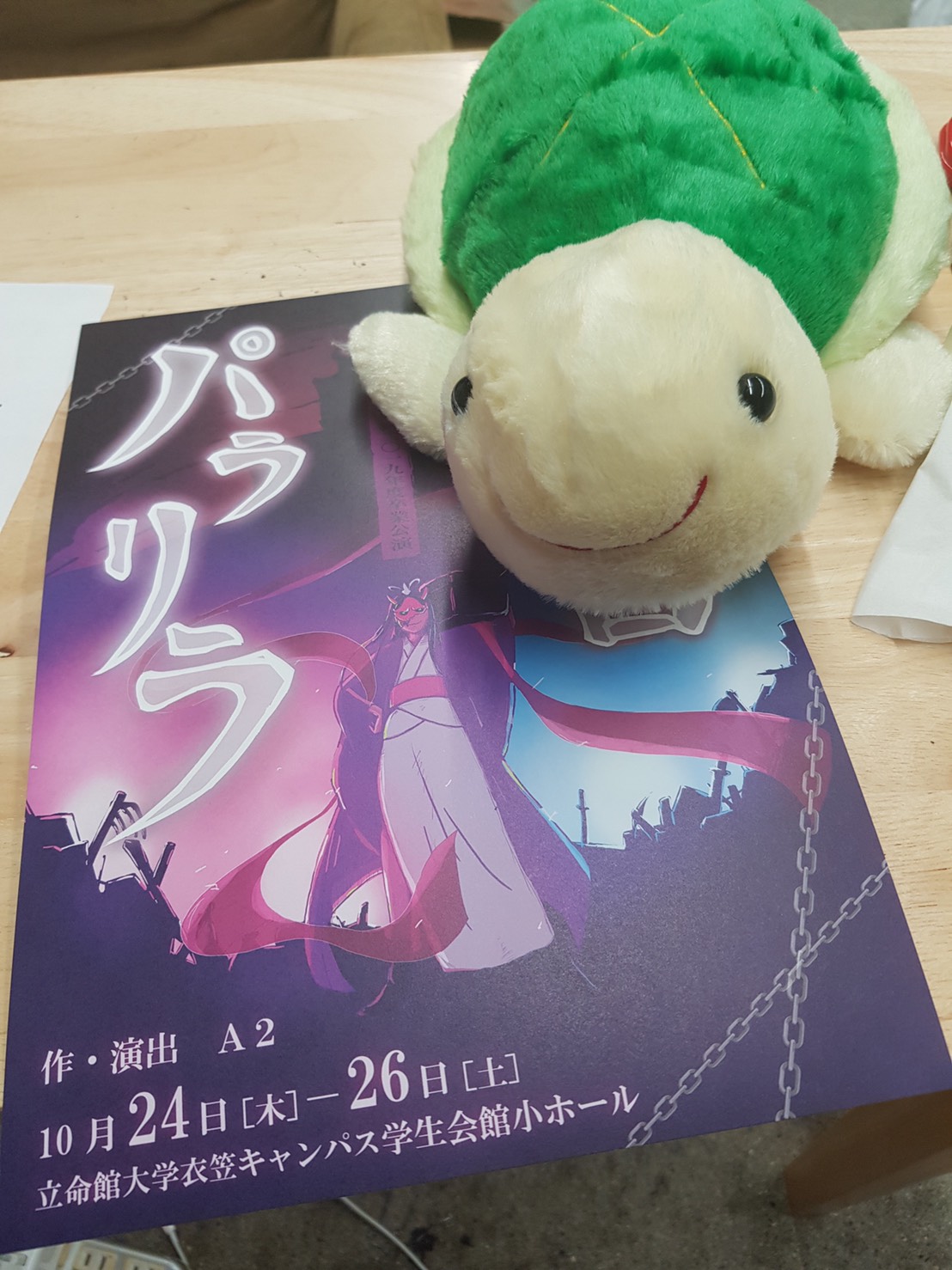 あ、写真は公演日誌の写真撮らなきゃ…と呟いたらしっかりカメラの方を向いてくれた亀田るーぺさんと寝不足で心配な樹本すぐりです。大事な会議中、話を聞け。←