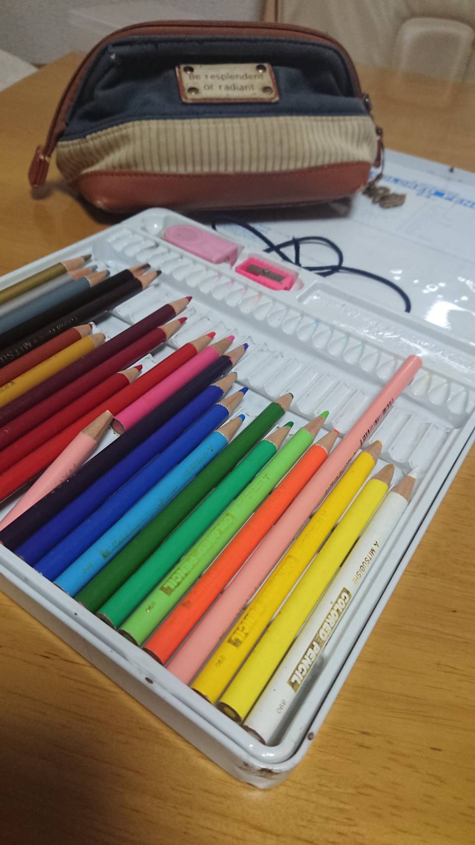 私、けっこう物持ちがいいんです。(また話は戻ってくるので安心してください)今使っている筆箱は中学校2年生から使っていますし、色鉛筆にいたっては、小学校1年生の頃に入学祝いです買ってもらった物を使っています。もう、ふたは閉まりません。あと、カバンのなかで色鉛筆がよくなだれをおこしています。でも買い替えるほどでもない気がするんですよね。