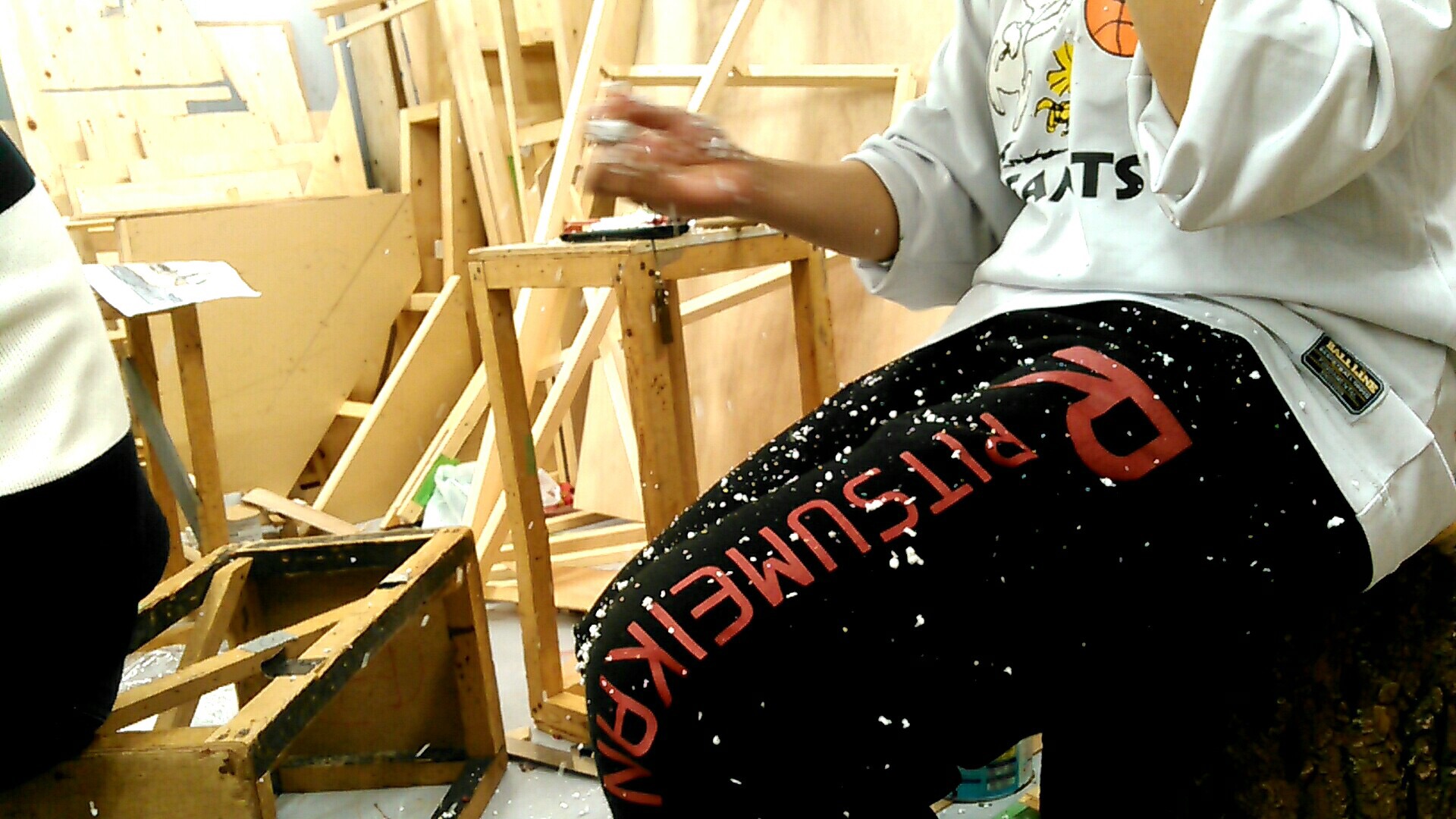 先輩が模様をつけているこの"白いの"は、いったいどこの舞台装飾になるのやら……