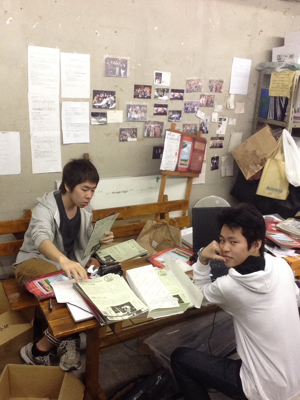 宣伝美術部が作ってくれたビラや情宣が作ったオレムなどを多くの人に読んで、知って、観に来てもらいたい!という思いで日々配っています。
