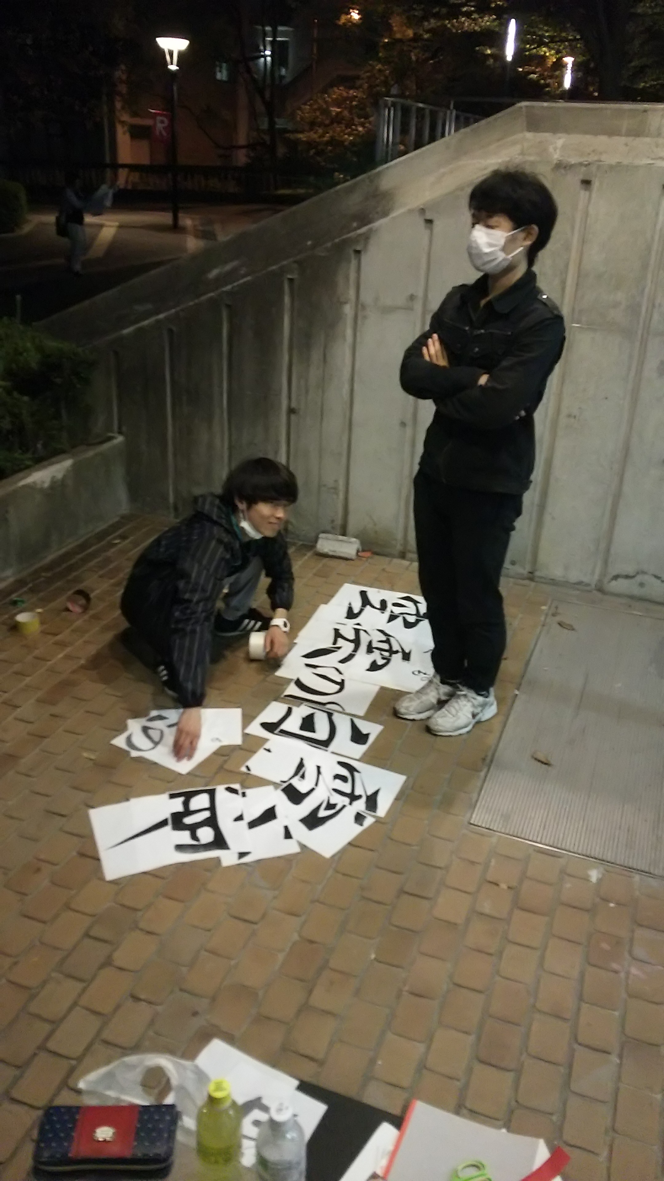 本日の写真は、受け付け装飾に取り組む宣伝美術のメンバー、狩野ぴえろと星野一。私たち宣伝美術は受け付け装飾でまずお客さまをお出迎えいたします。心の片隅で結構ですので、ご来場いただいた際楽しみの一つとして覚えておいていただいてければ幸いです!