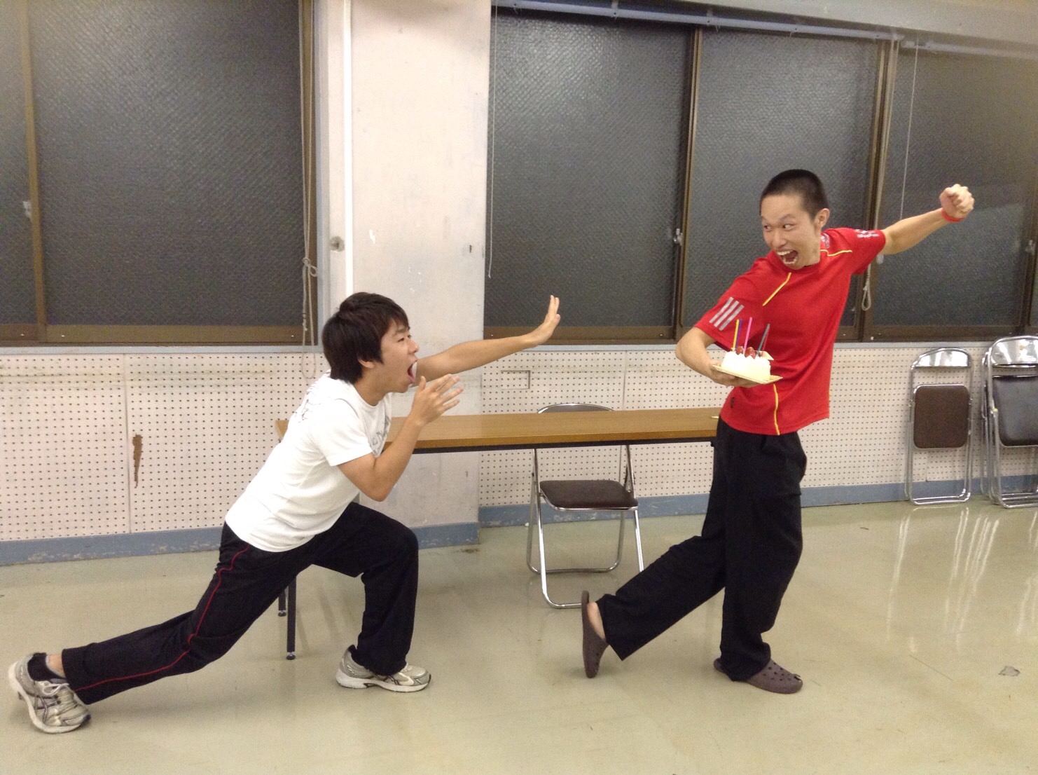 写真は誕生日祝いのケーキを奪われる僕と、泥棒役が誰よりも似合ってしまう今公演の演出です。